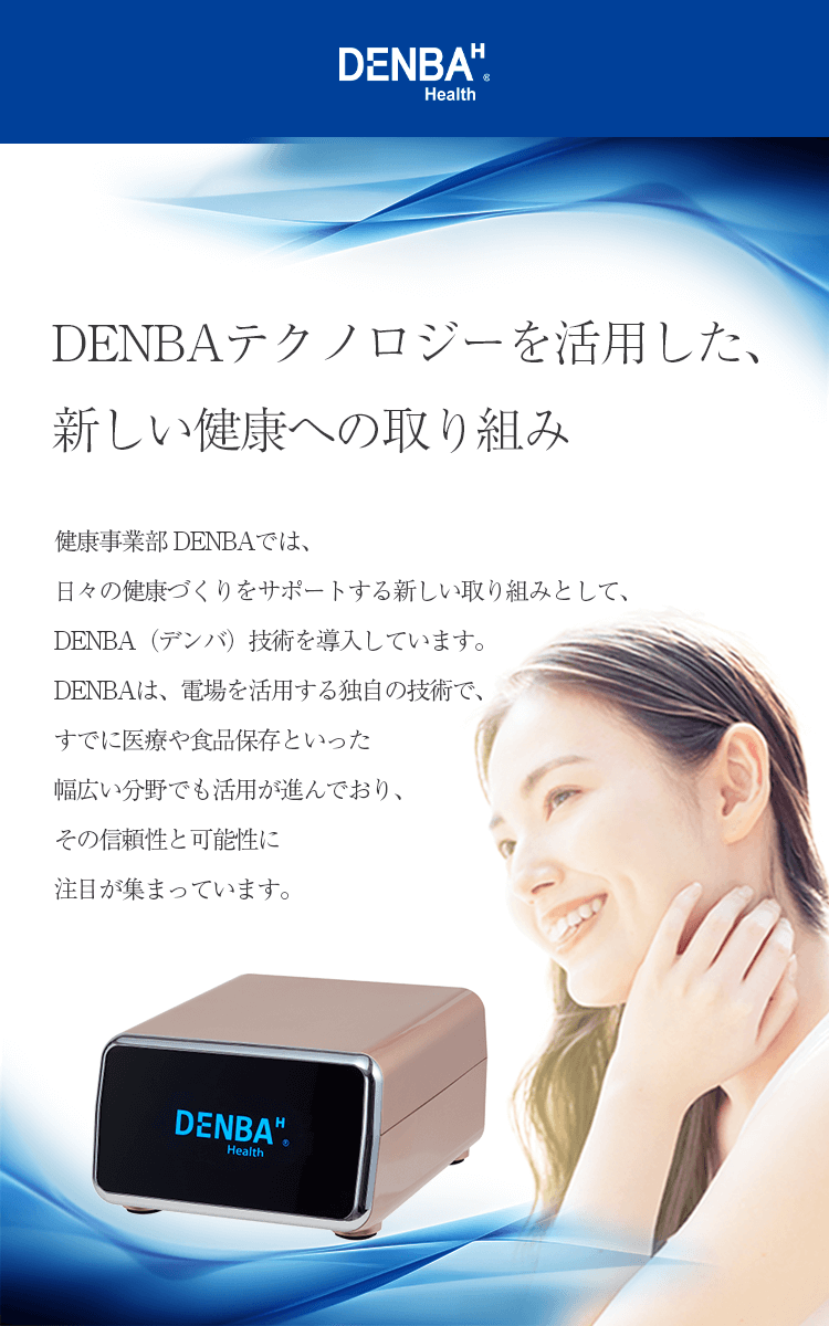 DENBAは、電場を利用して体の内部にやさしく働きかけ、健やかなめぐりやリカバリーをサポートする革新的な技術です。